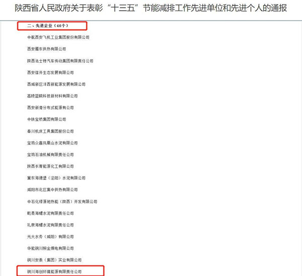 銅川能源榮獲陜西省“十三五”節能減排工作先進(jìn)企業(yè)稱(chēng)號