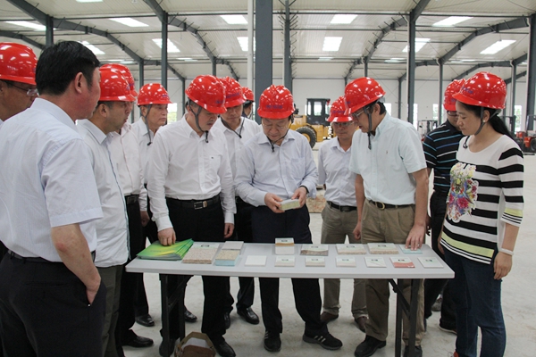 ? ? 2014年9月11日,全國政協(xié)常委、經(jīng)濟委員會(huì )副主任、中國工業(yè)經(jīng)濟聯(lián)合會(huì )會(huì )長(cháng)、原工信部部長(cháng)李毅中在中國工業(yè)經(jīng)濟聯(lián)合會(huì )執行副會(huì )長(cháng)兼秘書(shū)長(cháng)榮劍英,安徽省人大常委會(huì )原代理主任、安徽工業(yè)經(jīng)濟聯(lián)合會(huì )會(huì )長(cháng)黃岳忠,亳州市委常委、譙城區委書(shū)記胡朝榮,副市長(cháng)李軍,市政協(xié)副主席余林等領(lǐng)導陪同下,到亳州海創(chuàng )新型節能建筑材料公司項目現場(chǎng)參觀(guān)調研。海創(chuàng )公司董事李順安率海螺水泥皖北區域委員、宿州海螺總經(jīng)理劉陳及亳州海創(chuàng )新材料公司班子成員楊波、鄧冬斌、孫超等熱情接待了李常委一行。