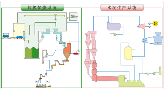 垃圾焚燒產(chǎn)生的熱量可替代部分水泥窯燃料,減少燃料燃燒產(chǎn)生的二氧化碳排放;相比填埋處理方式,避免了甲烷和二氧化碳排放問(wèn)題;爐渣可替代部分水泥原料,游離態(tài)鐵、鋁等金屬可分別回收,資源化程度高。